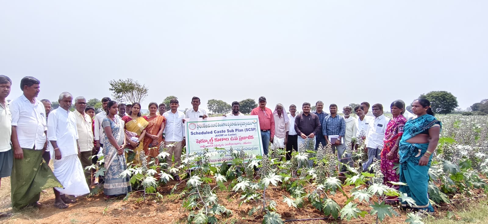 A field day was organized on 17th March, 2026 at Jangamreddypalli village, Amrabad mandal, Nagarkurnool district, as part of the “Praja Palana - Pragati Pranalika: 99 Days Action Plan” to promote rabi castor cultivation under the Scheduled Caste Sub-Plan (SC-SP). The programme aimed to enhance the area and productivity of rabi castor by demonstrating improved production technologies. The field day was conducted at the farmer’s field of Sri Ch. Niranjan, where the high-yielding castor hybrid ICH-5 was demonstrated. The programme focused on creating awareness among farmers regarding the adoption of improved technologies, particularly high-yielding cultivars, to increase productivity, profitability and area expansion under rabi castor cultivation. The event was organized by the team of scientists from AICRP on Castor, RARS, Palem, comprising Dr. K. Sadaiah, Scientist (Plant Breeding), Dr. M. Shankar, Scientist (Entomology), Mrs. K. Mamatha, Scientist (Agronomy) and Dr. G. Eswara Reddy, Scientist (Plant Breeding) along with Dr. M. Sreedhar, Principal Scientist (Oilseeds). The programme was conducted under the chairmanship of Dr. L. Krishna, Associate Director of Research, RARS, Palem. At the outset, Dr. K. Sadaiah highlighted the significance of the programme and emphasized the need to expand castor cultivation in the state. He also informed farmers about the availability of quality seed at RARS, Palem. The host farmer, Sri Ch. Niranjan shared his experiences and crop management practices adopted for raising a healthy crop. An interactive session followed, during which farmers raised queries related to best management practices, pest and disease management and marketing opportunities in castor. Addressing the gathering, Mrs. K. Mamatha elaborated on improved agronomic practices for achieving higher yields. Dr. M. Shankar discussed effective pest and disease management strategies while Dr. M. Sreedhar emphasized the importance of rabi castor cultivation under irrigated conditions and appreciated farmers for adopting the crop. Dr. L. Krishna highlighted the importance of traditional crops of the region and stressed the need for maintaining soil health and nutrient status to achieve sustainable yields. He also discussed various opportunities for farmers to get acquainted with the latest agricultural technologies. The programme concluded with a field visit to the ICH-5 demonstration plot, where farmers observed the crop performance and interacted with scientists regarding varietal traits, crop management, and pest control measures.